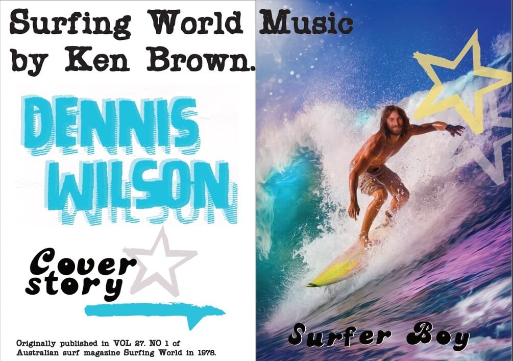 Beach Boys/Beatles mash up art by Why The Longplay face?; a rant about a vaguely Dennis related NFT (inc. some casual swearing), fan memories of Dennis by Bengt Stenström; an archive review of Pacific Ocean Blue from Surfing World in '78; Dennis & Brian accidentally gatecrashing the BBC's Top Of The Pops coverage of Kokomo; art by PDC, Ooonthemarket333, Valerie Simadis, and Jackie Modra; cartoons by Ollivier Cartoonist (a homage to Bobby Figueroa, Dennis decides it's time Carl learns how to surf, & celebrating the Beach Boys 60th anniversary); a random anonymous Dennis confession; a typographic collage inspired by Pond's Sitting Up On Our Crane; obscure vintage Beach Boys compilations with cover art portraying the whole band surfing ; Beach Boys album cover glitter art found on etsy + other odd merch, screen shots of Dennis as the original true surfer of the band...